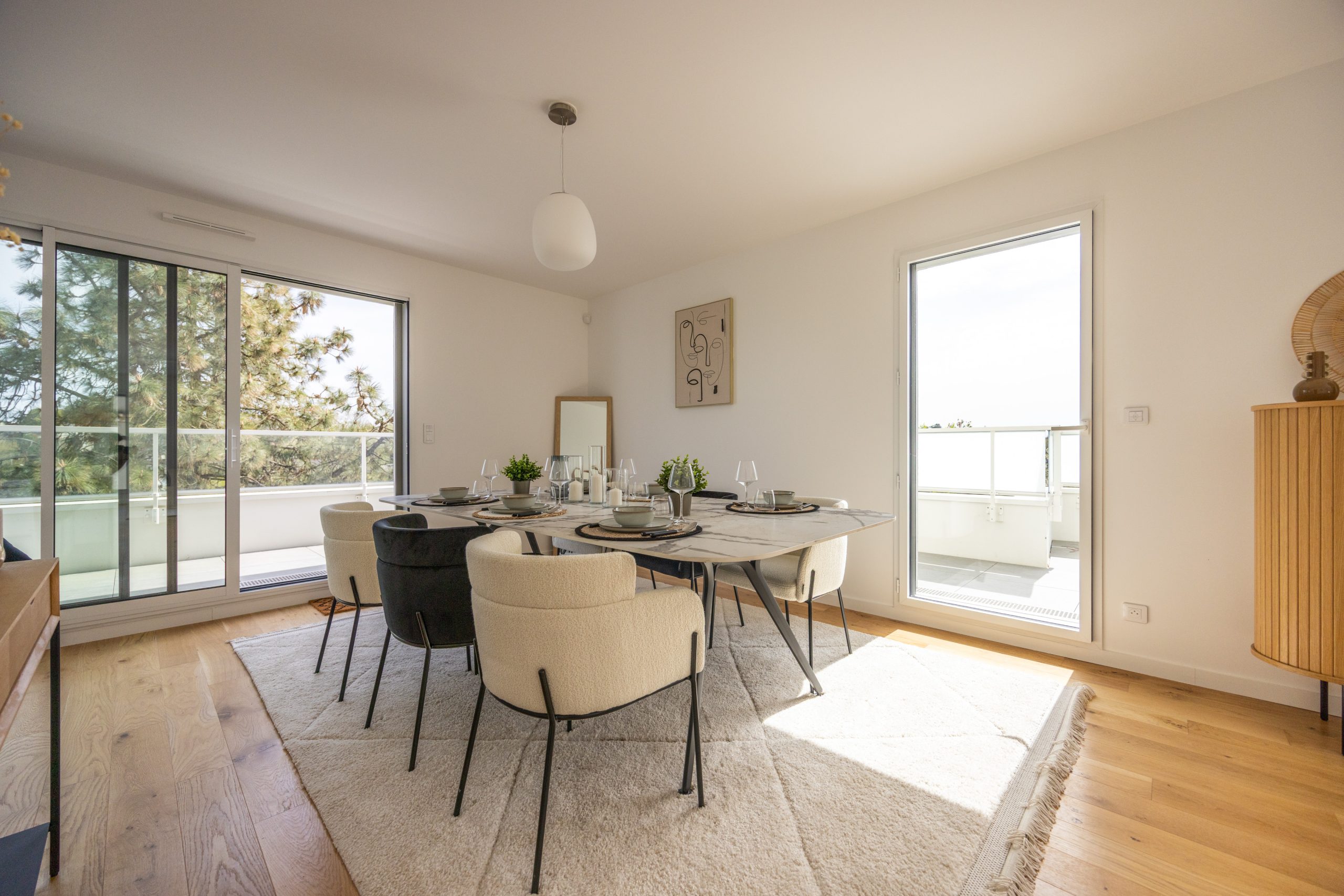 Pièce de vie avec cuisine A/E ouverte sur séjour/salon de 48m2