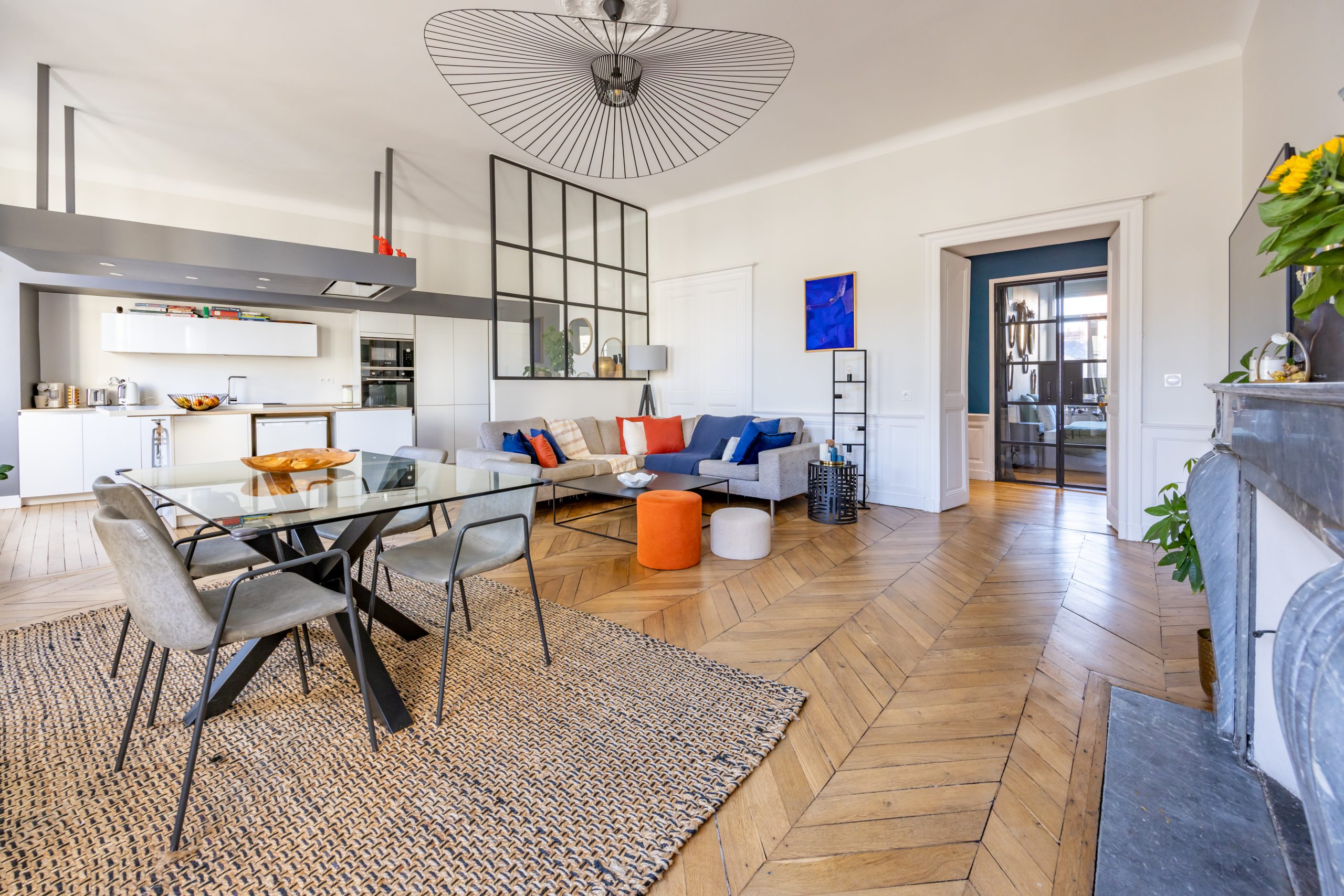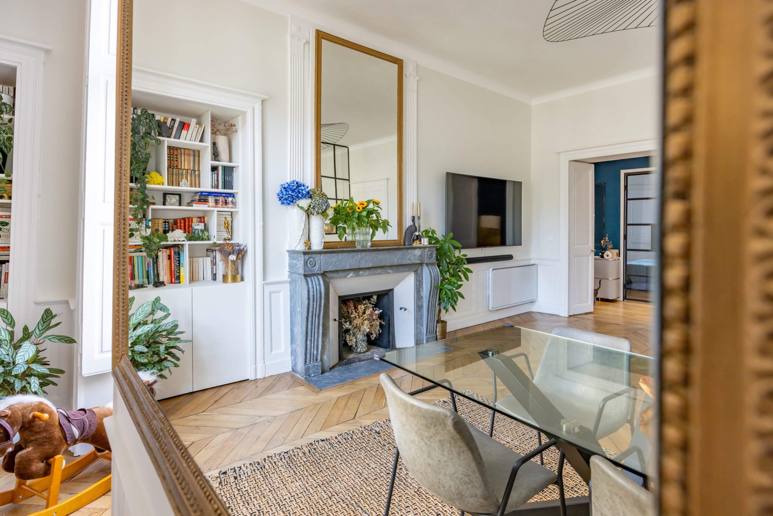 Cet élégant appartement ne laissera pas insensibles les amoureux des beaux volumes, parquets, hauteur sous plafond, moulures, et autres éléments anciens de décoration