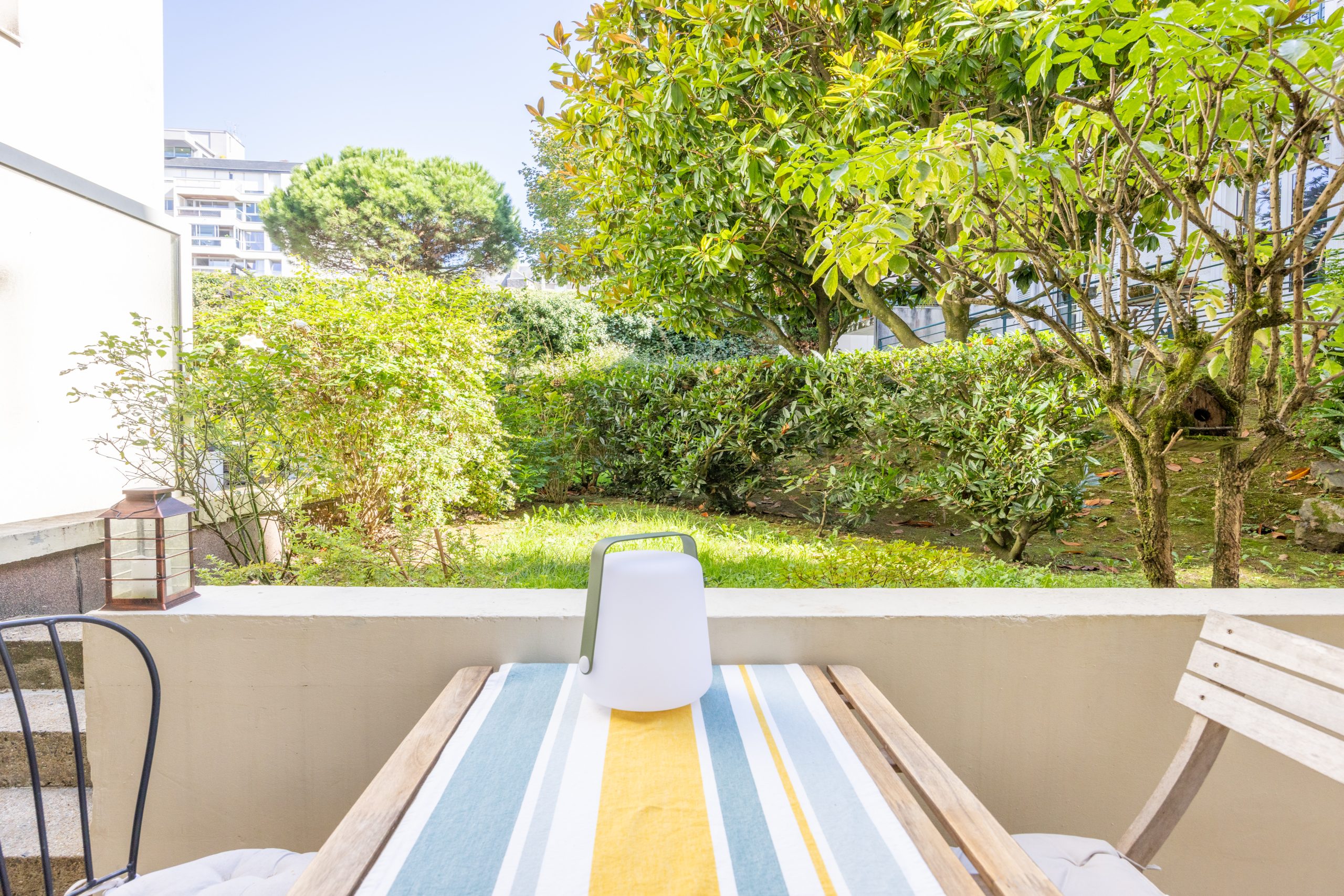 Belle pièce de vie avec cuisine semi-ouverte aménagée et équipée, donnant sur une terrasse et un petit jardin privatif.