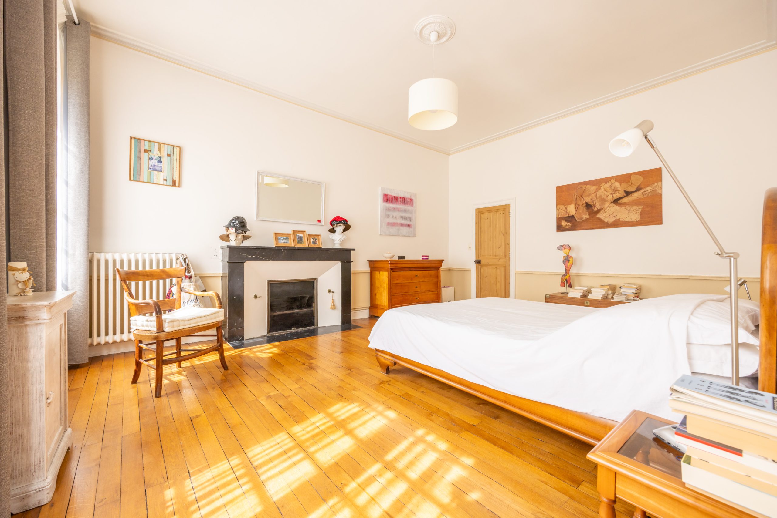 Salon de 31 m² baigné de lumière, avec cheminée fonctionnelle