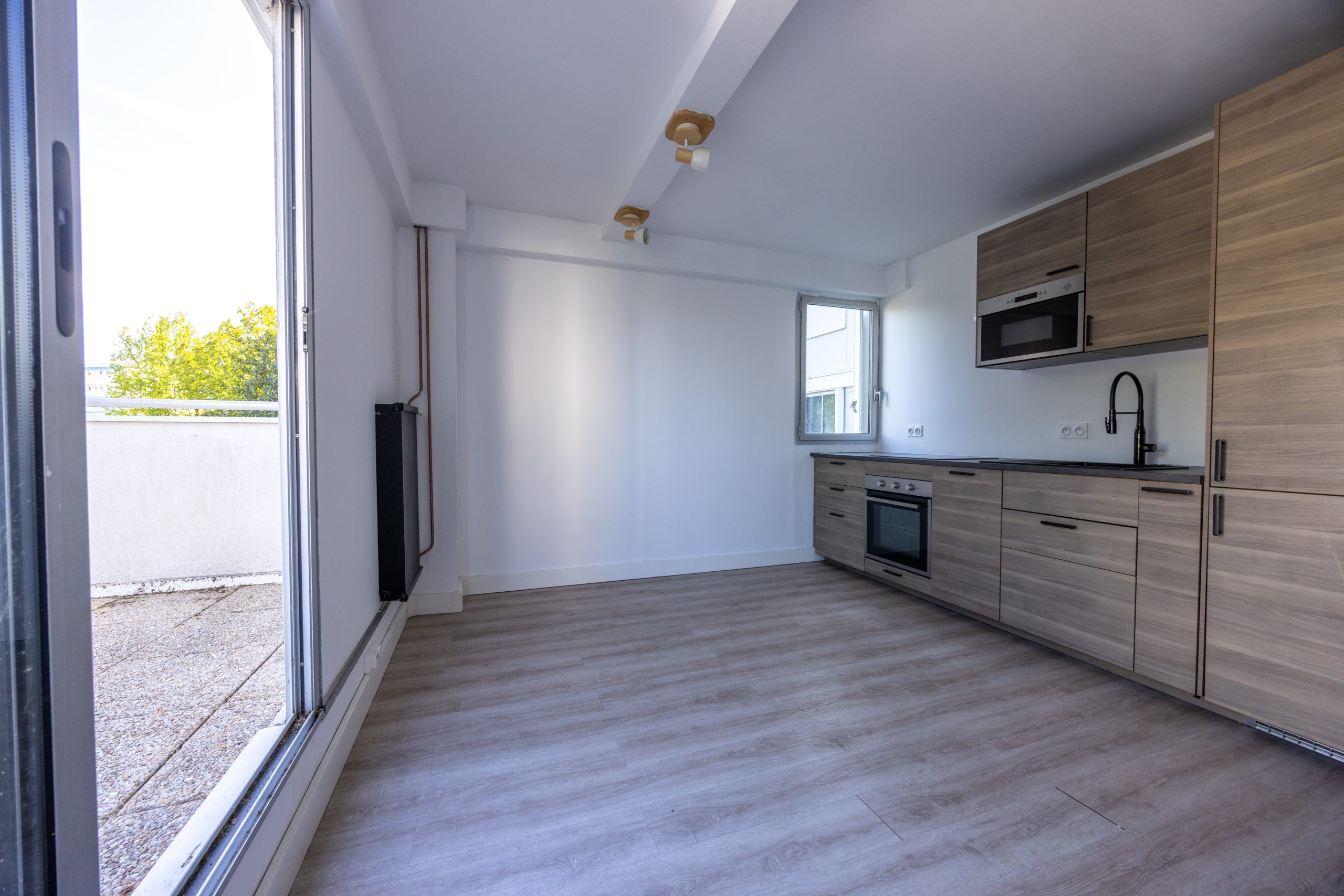 Situé au 1er étage avec ascenseur l’appartement se compose d’un couloir de distribution en L avec un espace de vie lumineux ouvert sur une cuisine indépendante, d’une salle d’eau et de WC séparés. Une grande terrasse de 16 m2 vient compléter l’ensemble, ainsi qu’une cave.