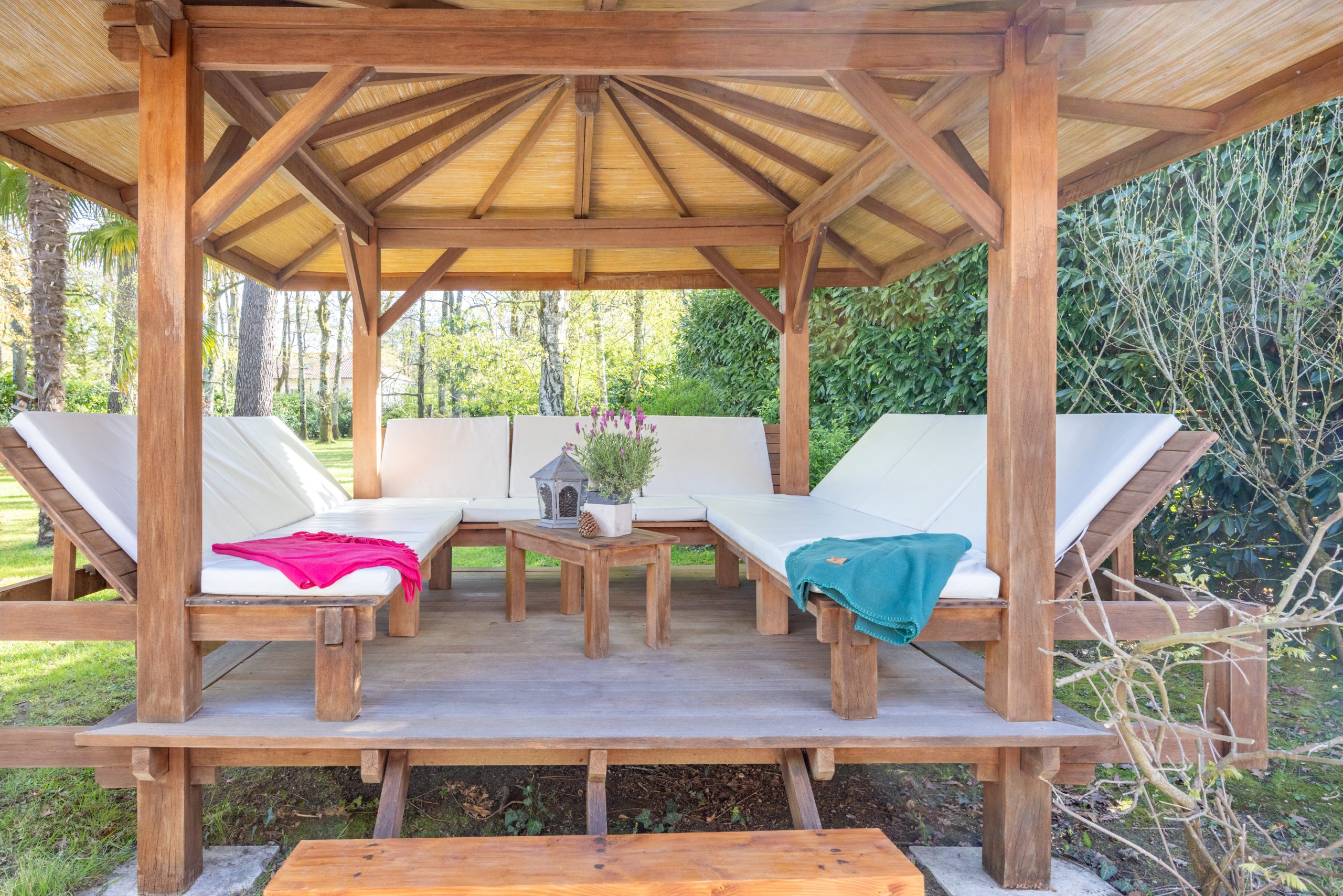 L’intérieur : 8 pièces dont une vaste pièce de vie avec toit cathédrale et cheminée, un salon, une cuisine centrale aménagée équipée, le tout ouvert sur le parc.