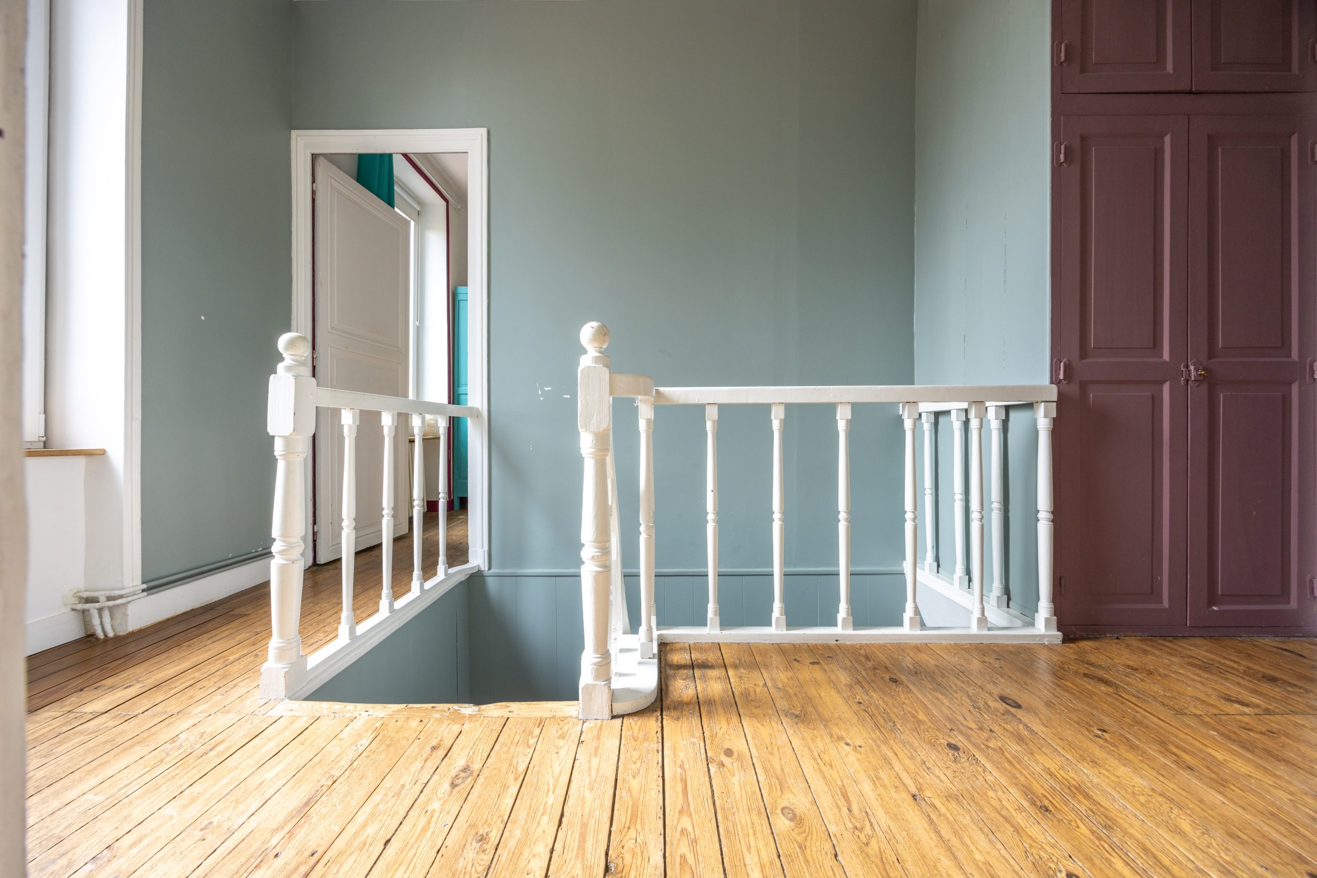 À l’étage, le palier dessert quatre chambres sur parquet d’origine