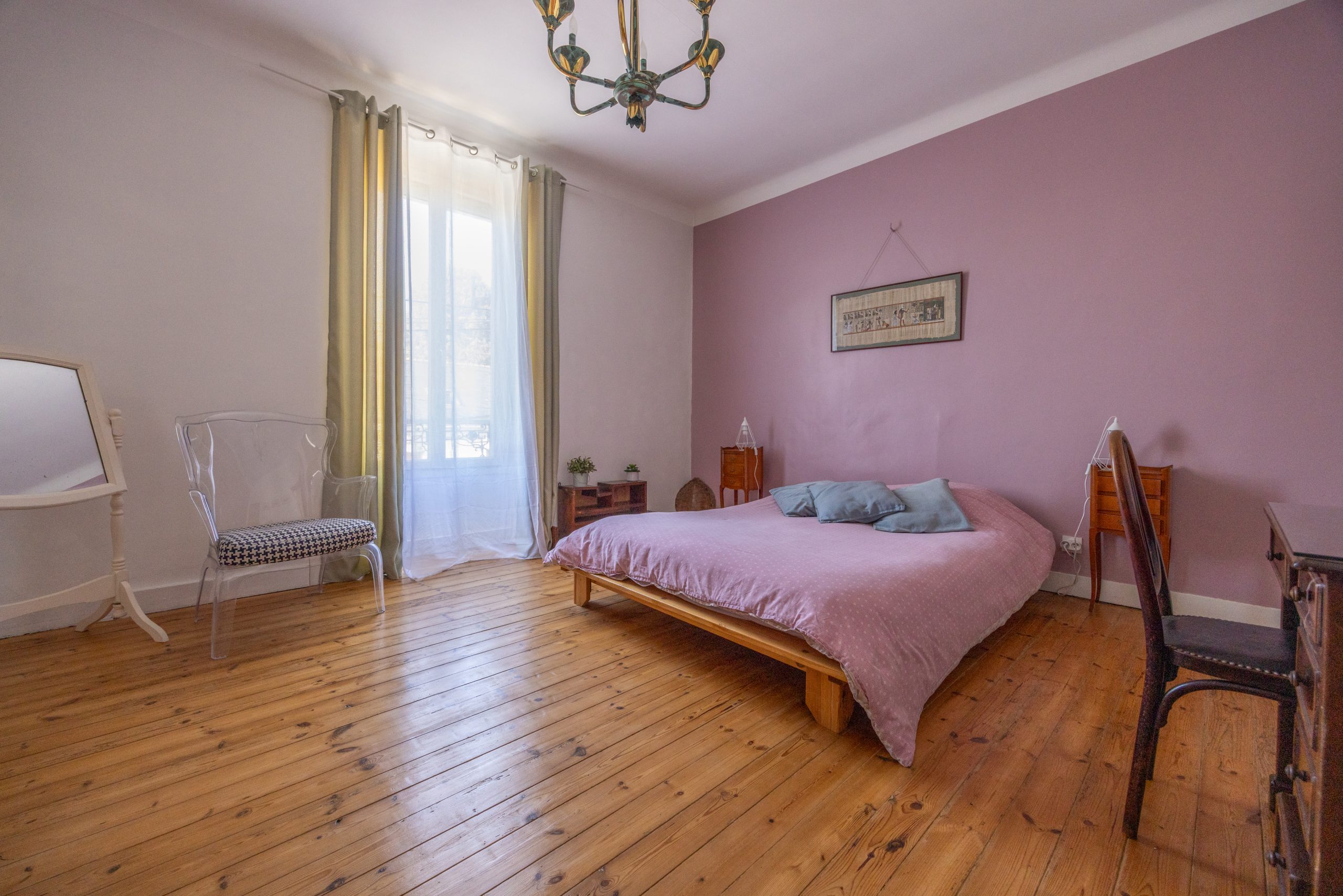 Au 1er étage : 2 chambres sur parquet dont une aspectant une agréable terrasse, salle de bains, wc, 1 autre chambre avec sa salle d’eau et 1 grand bureau sur jardin.