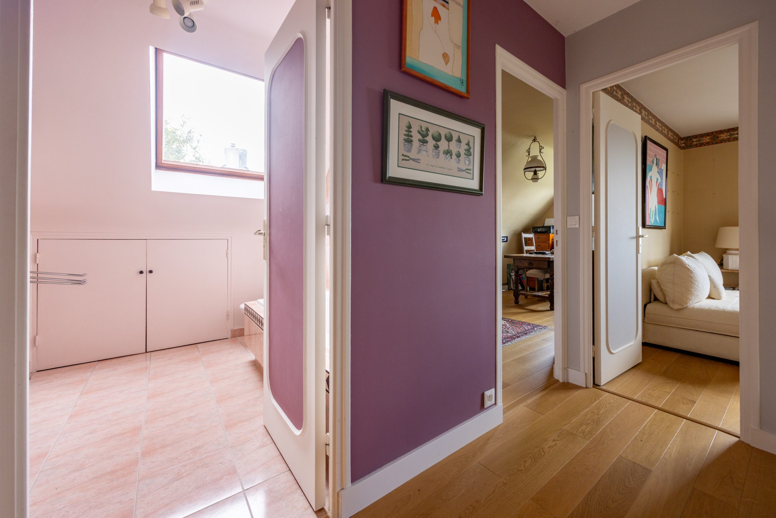 Au 1er étage, 3 chambres, une salle de bains, un WC, un bureau et un grenier.
