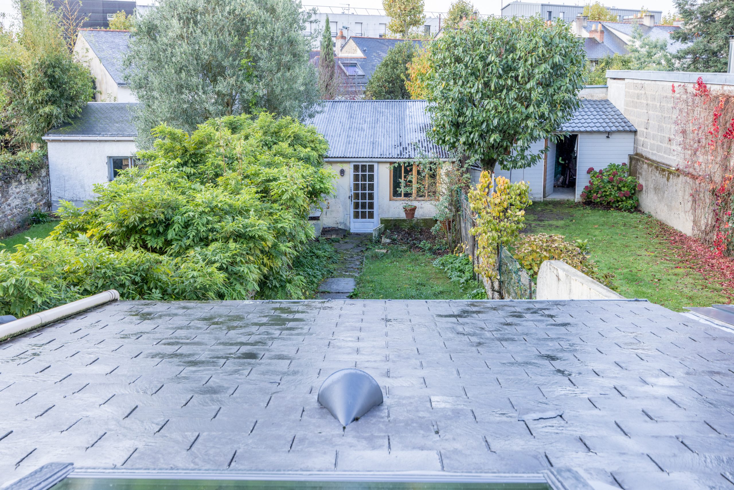 Un jardin et un appenti en fond de jardin
