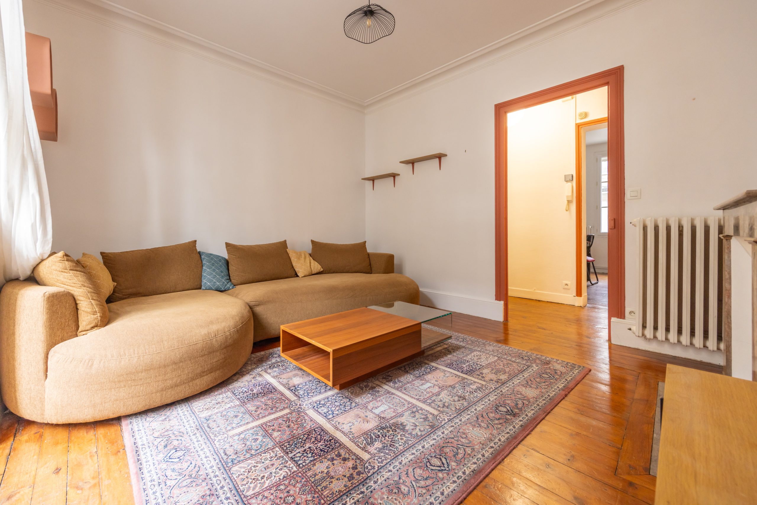 Salon lumineux avec cheminée