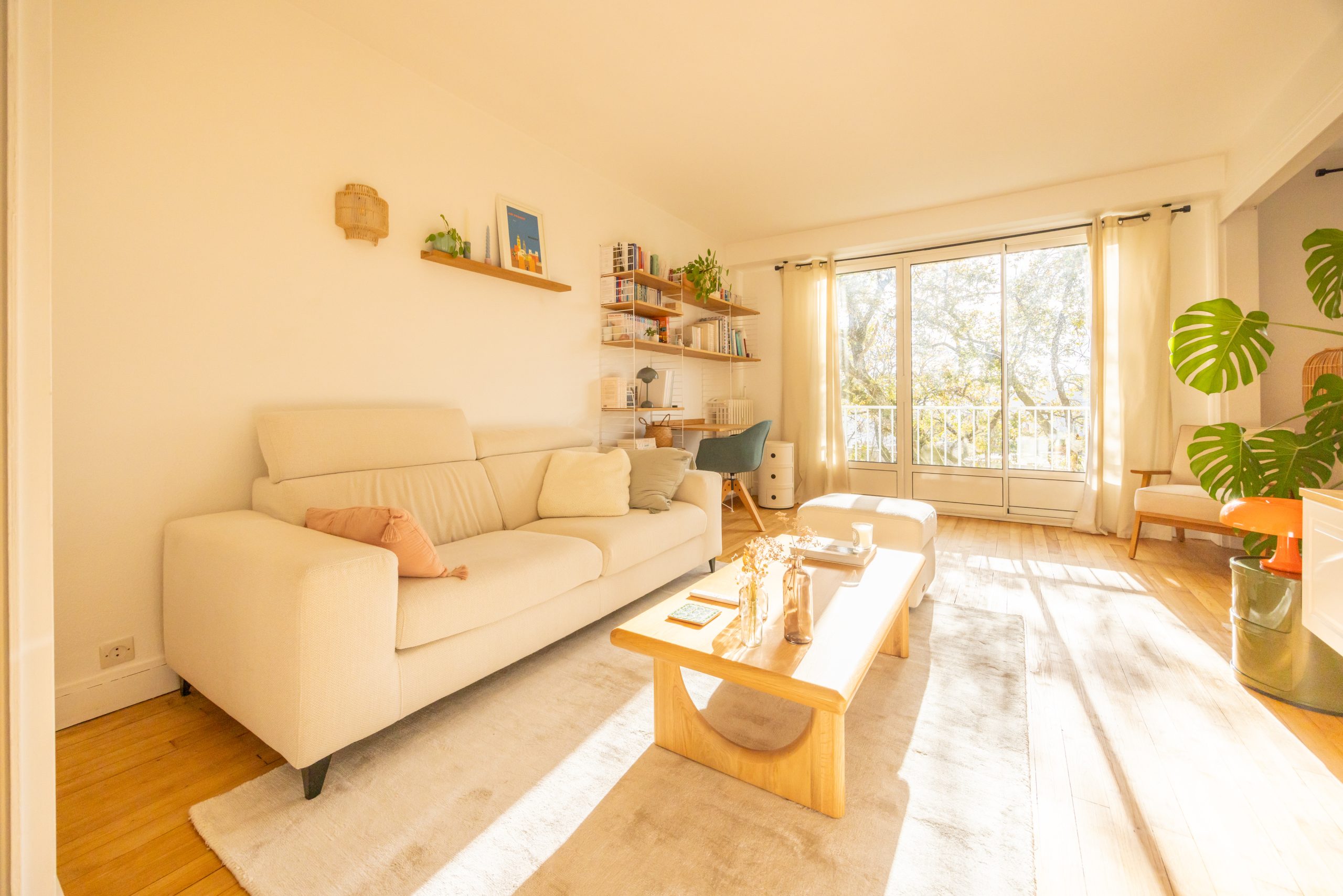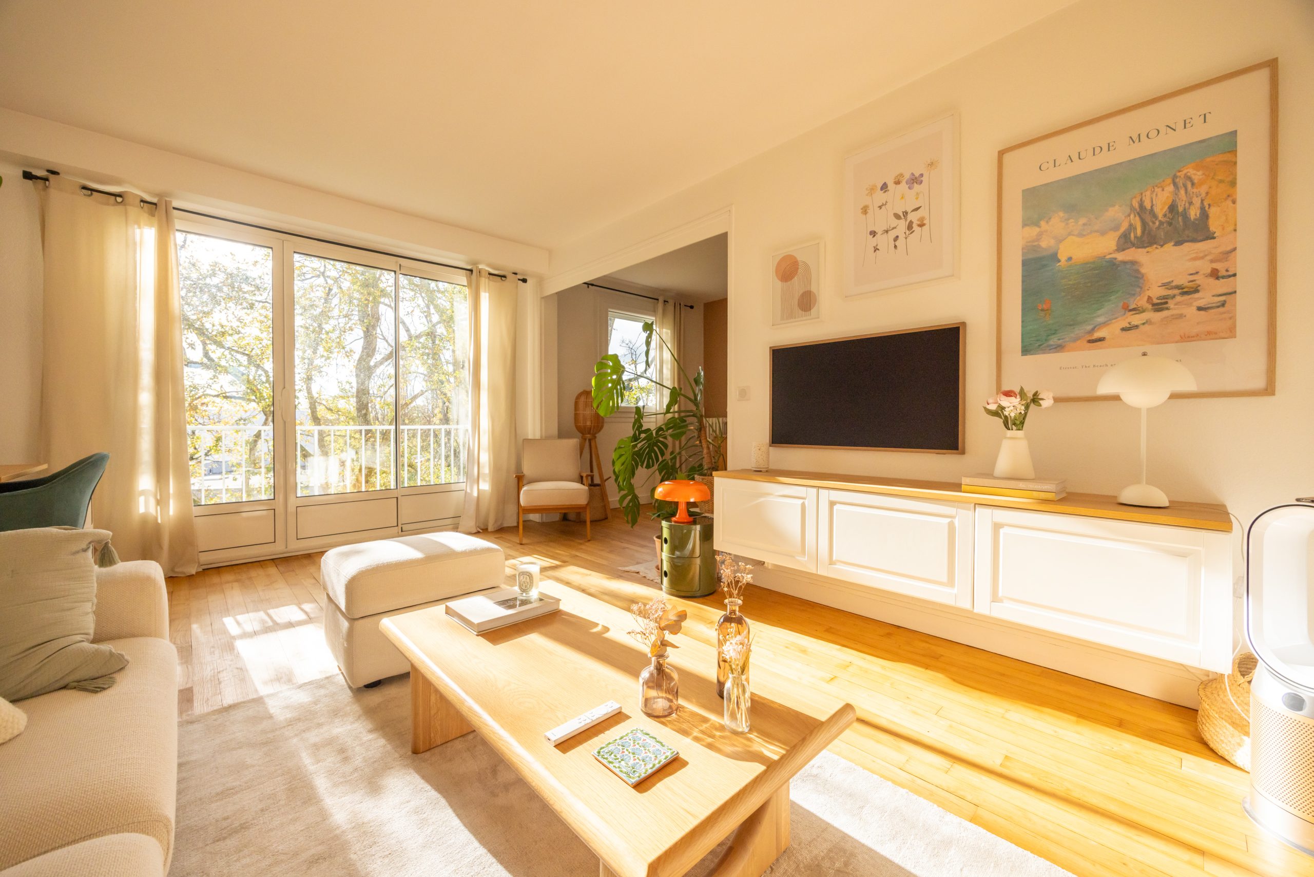 Un salon / salle à manger avec balcon exposé Sud