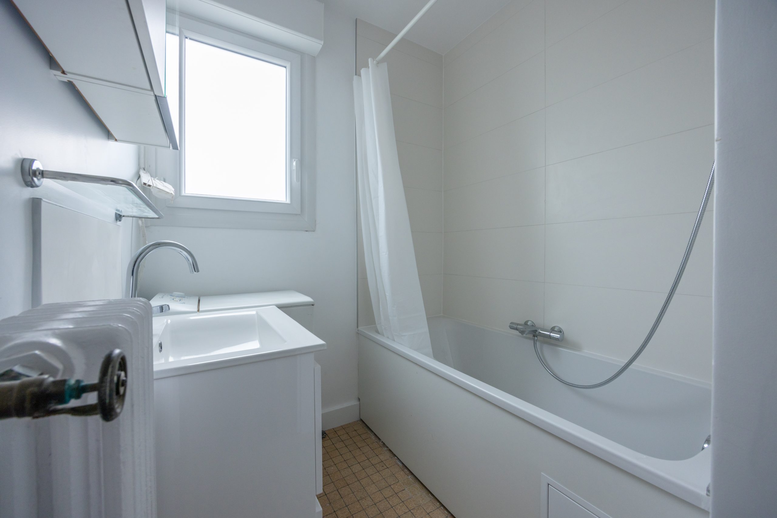 Salle de bains rénovée avec machine à laver