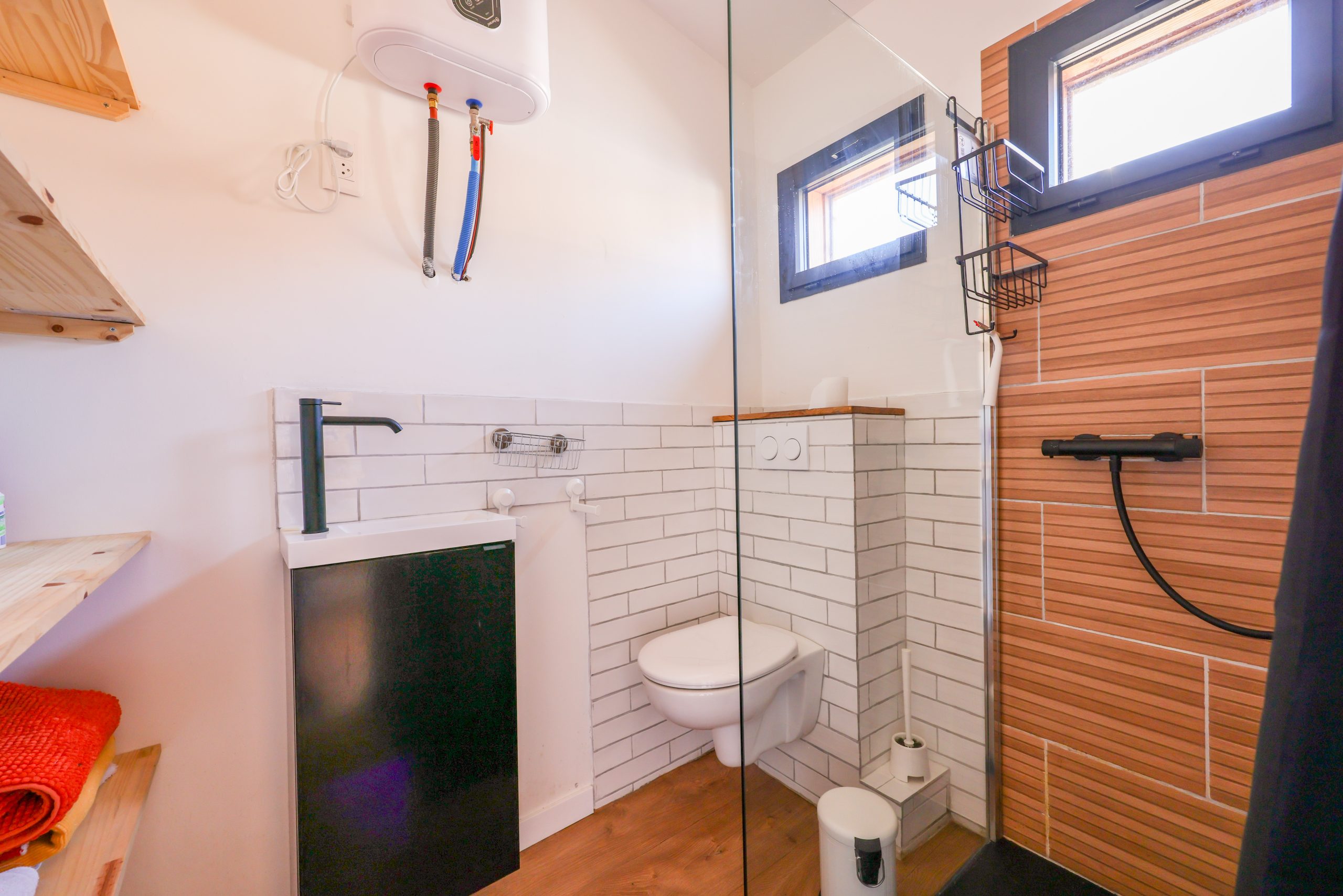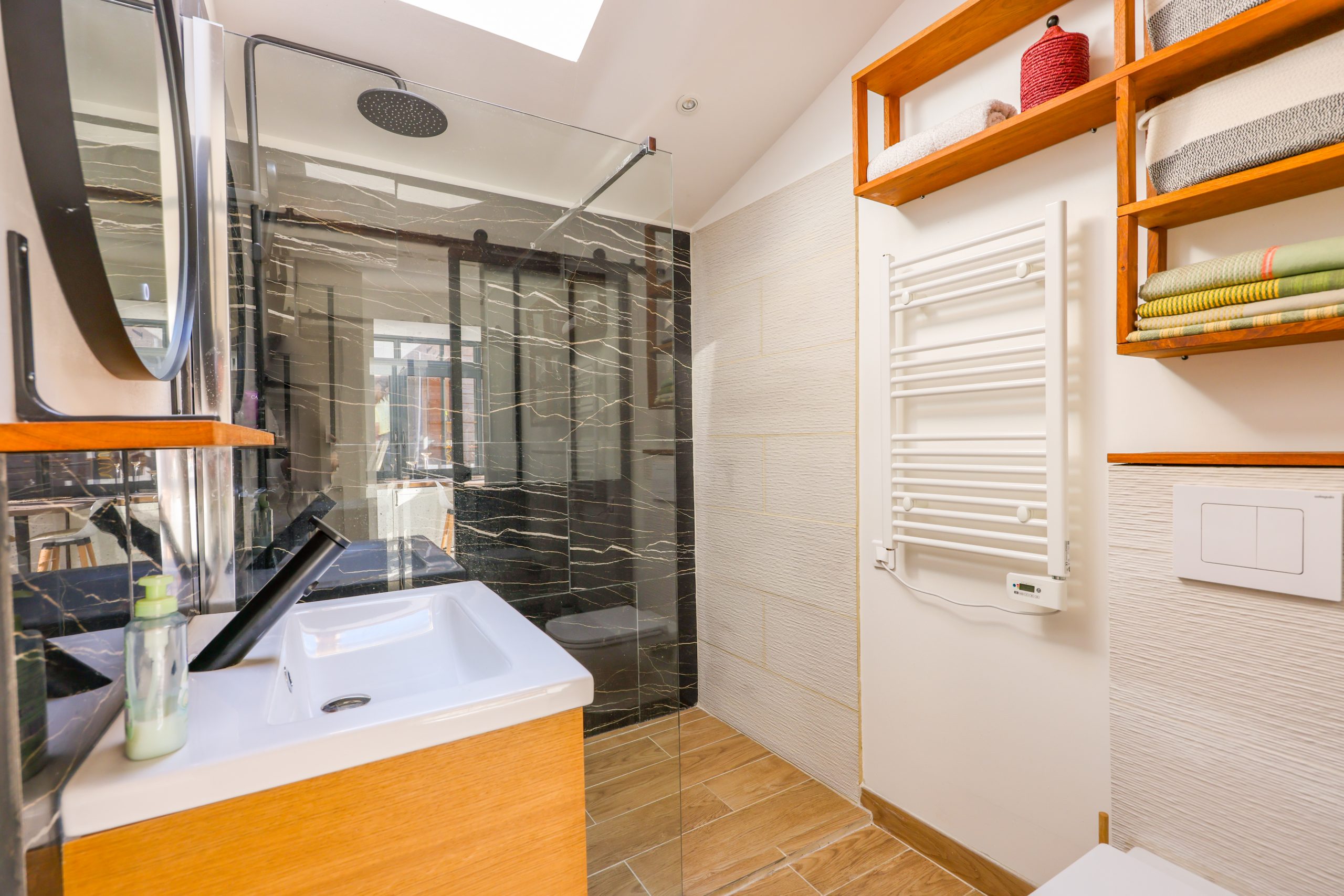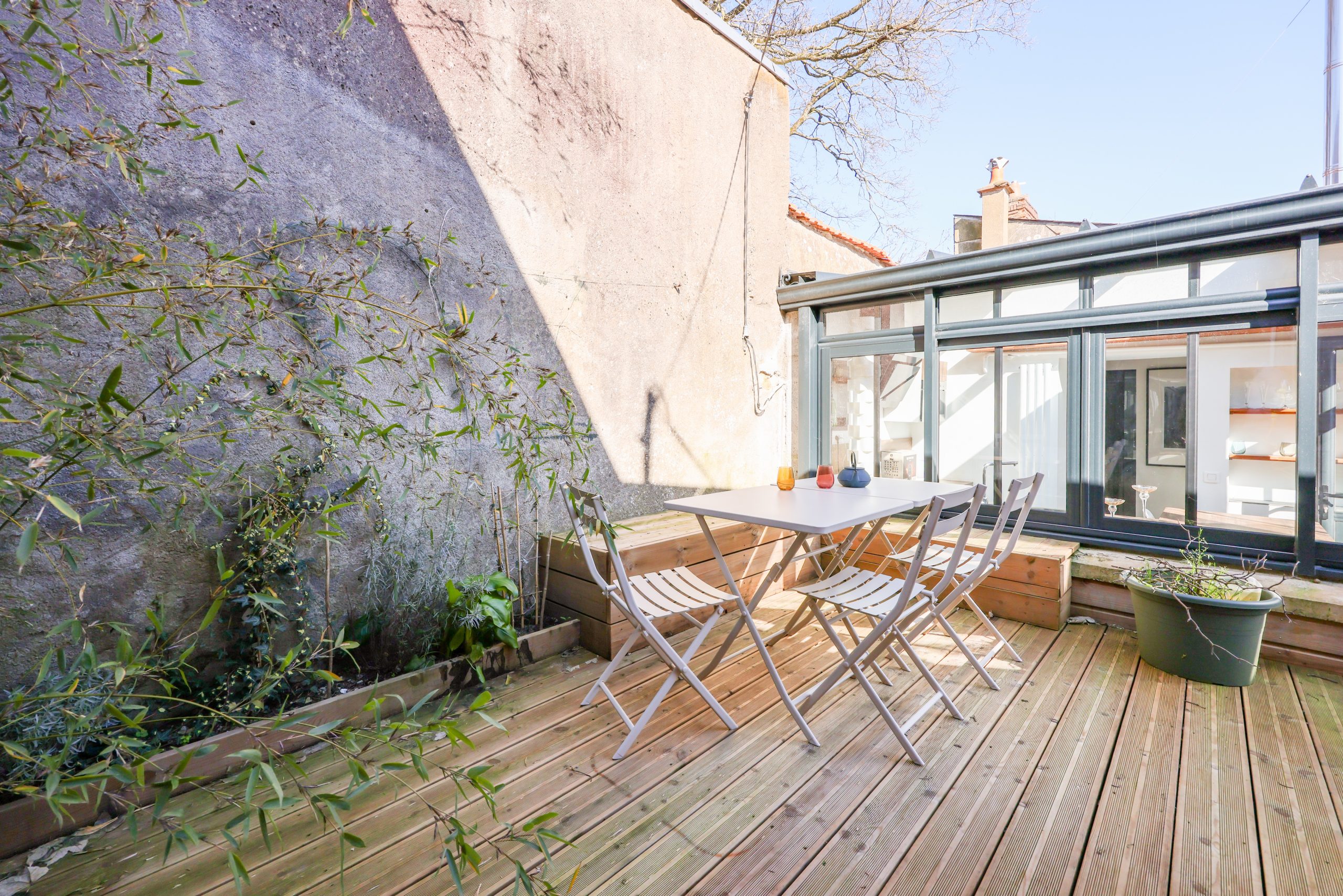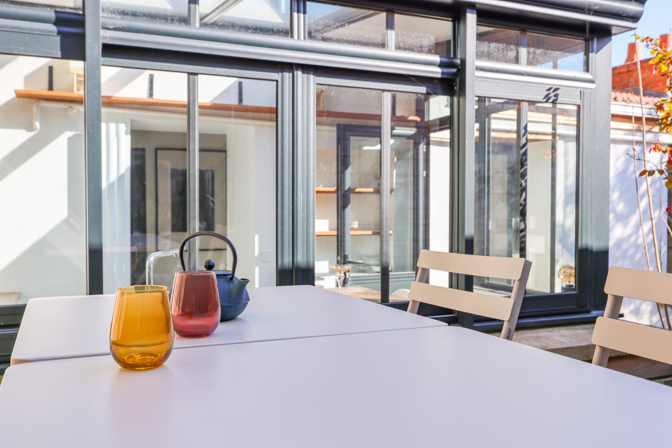 Maison avec cuisine sous véranda aménagée et équipée ( plaque, hotte, four, micro-ondes, réfrigérateur, lave-vaisselle)